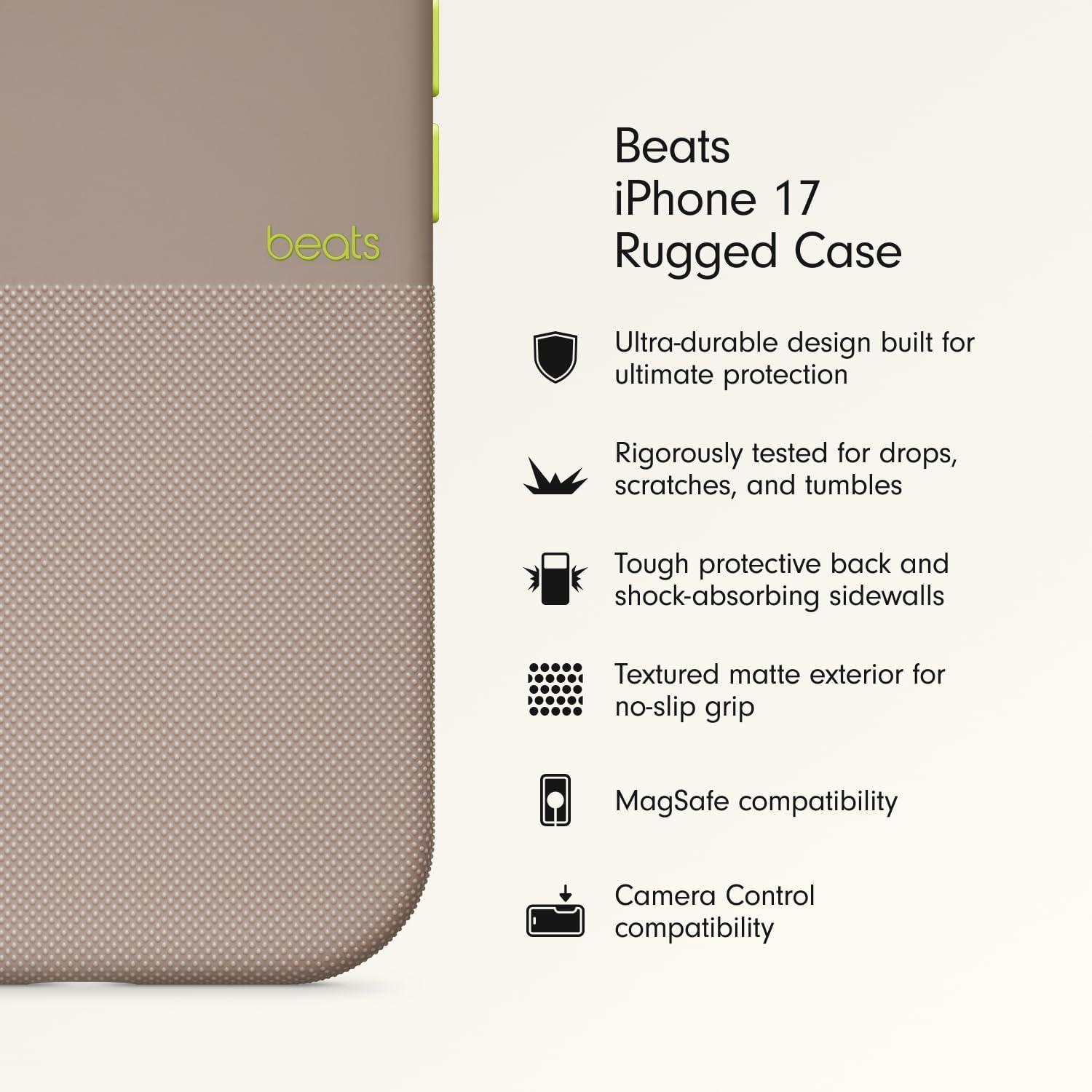 Beats iPhone 17 Pro Kickstand Case with MagSafe & Camera Control, Built in Stand & Lanyard, Matte Finish with Microfiber Lining – Granite Gray(Lime Stone)