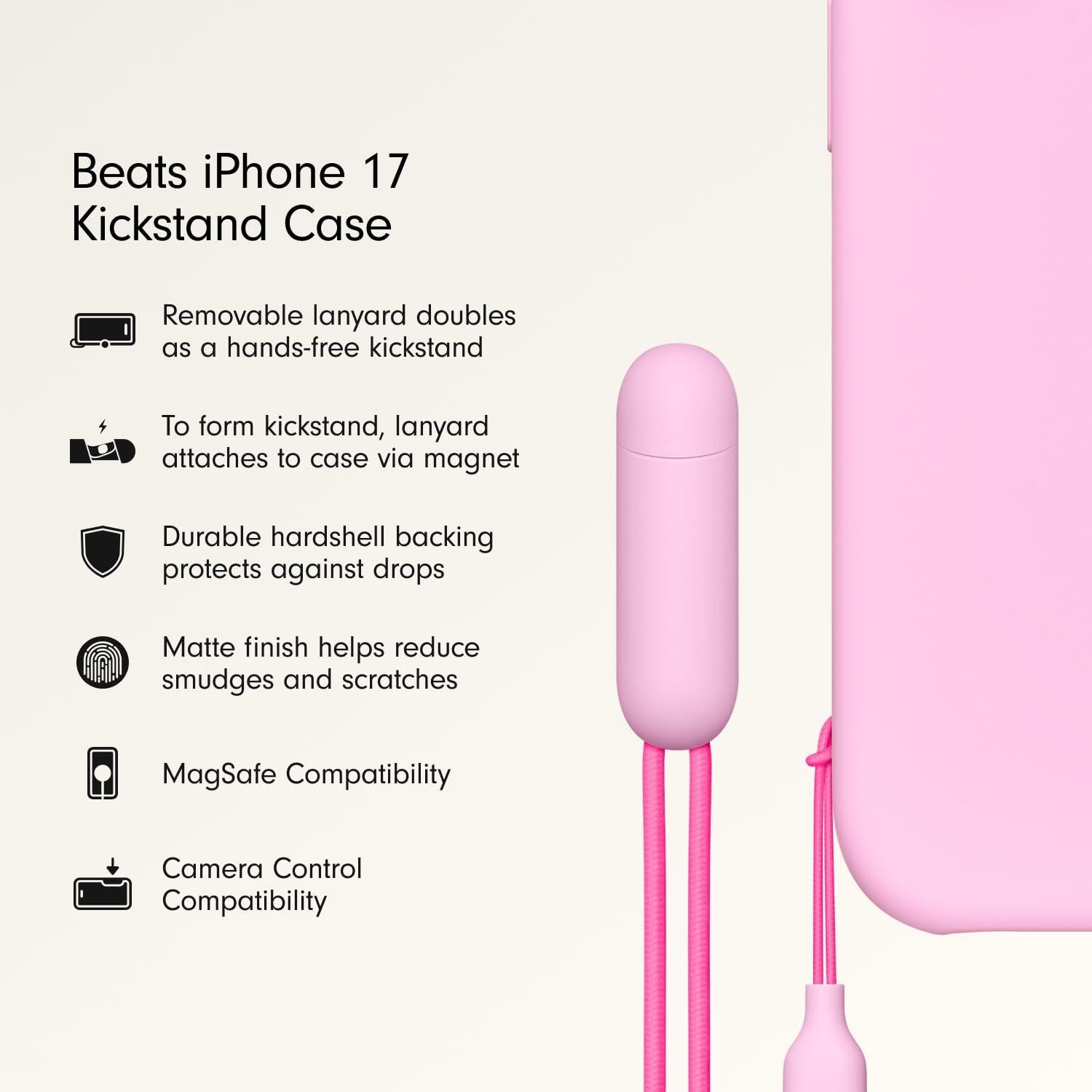 Beats iPhone 17 Pro Kickstand Case with MagSafe & Camera Control, Built in Stand & Lanyard, Matte Finish with Microfiber Lining – Granite Gray(Pebble Pink)