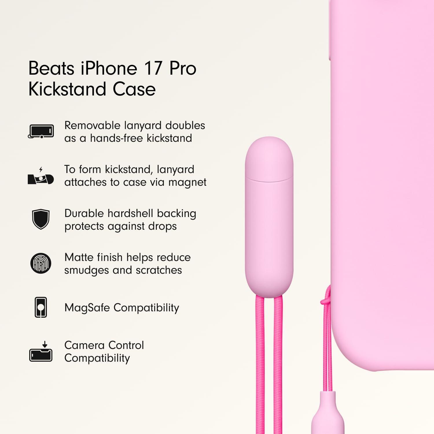 Beats iPhone 17 Pro Kickstand Case with MagSafe & Camera Control, Built in Stand & Lanyard, Matte Finish with Microfiber Lining – Granite Gray(Pebble Pink)